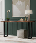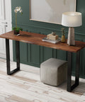 Each Acacia 70" Live Edge Console Table features a one-of-a-kind live edge acacia hardwood slab in brown finish, supported by robust industrial-grade iron U-bases in black finish.