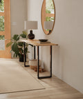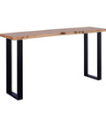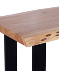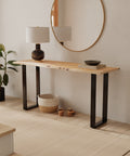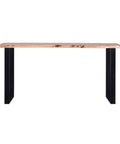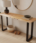 Each Acacia 70" Live Edge Console Table features a one-of-a-kind live edge acacia hardwood slab in natural finish, supported by a robust industrial-grade iron U-base in black finish.