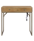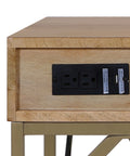 The Linden modular desktop is crafted from solid mango wood and set on a sleek metal base for a refined modern transitional look. Two spacious drawers accentuated with brass-finish knobs provide functional storage, while built-in power outlets and USB ports supports todays connected workspaces. Its compact, modular design makes it an ideal solution for apartments, dorms, studios and other space-conscious environments.